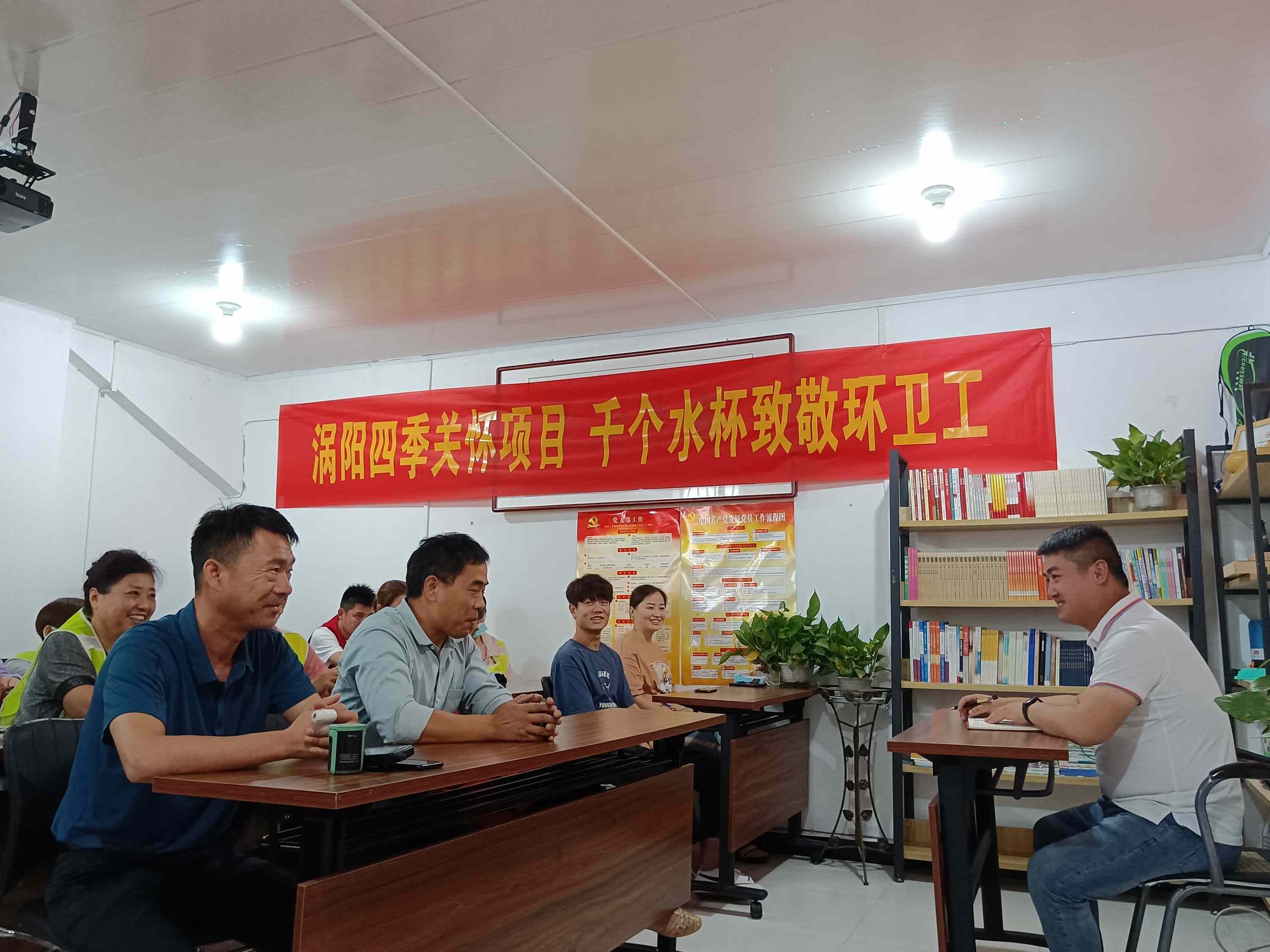 2021年7月5日上午,为了向这群可爱的人致敬,涡阳县爱心者协会“四季关怀”项目在爱心企业涡阳华玮精品生活的支持下,向全县主城区1134名环卫工人每人捐赠一个大容量防爆水杯。在涡阳县体育广场西门协会党团员会议室举行简易捐赠仪式,并邀请环卫工人代表、路段长代表、保洁公司代表、志愿者代表、爱心企业代表共同见证有意义的时刻,在会议室还进行了座谈会。通过座谈会各方代表分别发言,朴实的话语,赢得大家的阵阵掌声,增进了彼此的了解,拉近了彼此的距离,整个座谈会氛围轻松且其乐融融。