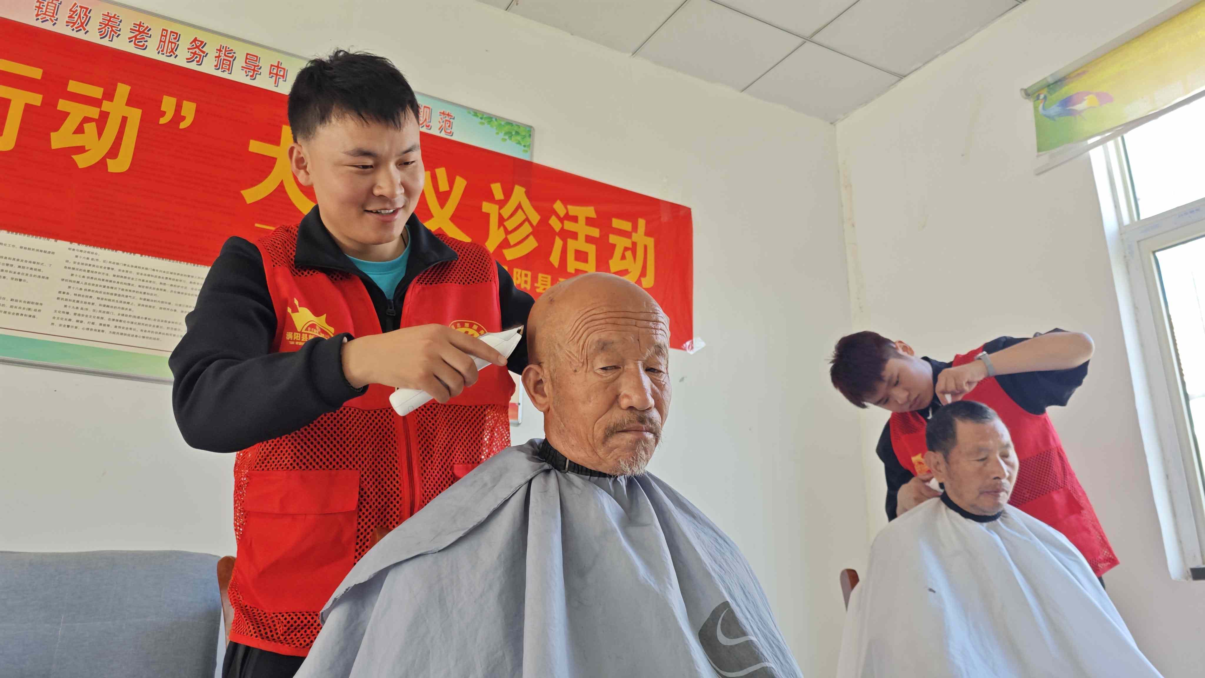 为了保障关爱活动有序进行,志愿者们从早上七点半集合出发,一直到中午十二点活动结束,志愿者们行程异常忙碌,但是都觉得很有意义。爱心理发志愿者彭景天、张宇翔、王柯翔,为了参加活动,提供义剪服务,只能进行调休,将预约的客户推迟到下午。为了让更多人受益,二十多名志愿者,分工明确,兵分两路,一支队伍到涡阳县义门镇卫生院,一支队伍到涡阳县义门镇敬老院。志愿者们此次为卫生院和敬老院老人们提供爱心义诊、用药指导、秋季养生知识分享、爱心义剪、亲情陪伴等服务内容。老人们看到志愿者们的到来,一个个兴高采烈,高兴得像个孩子。嘴里感谢的话说个不停,脸上露出灿烂的笑容。